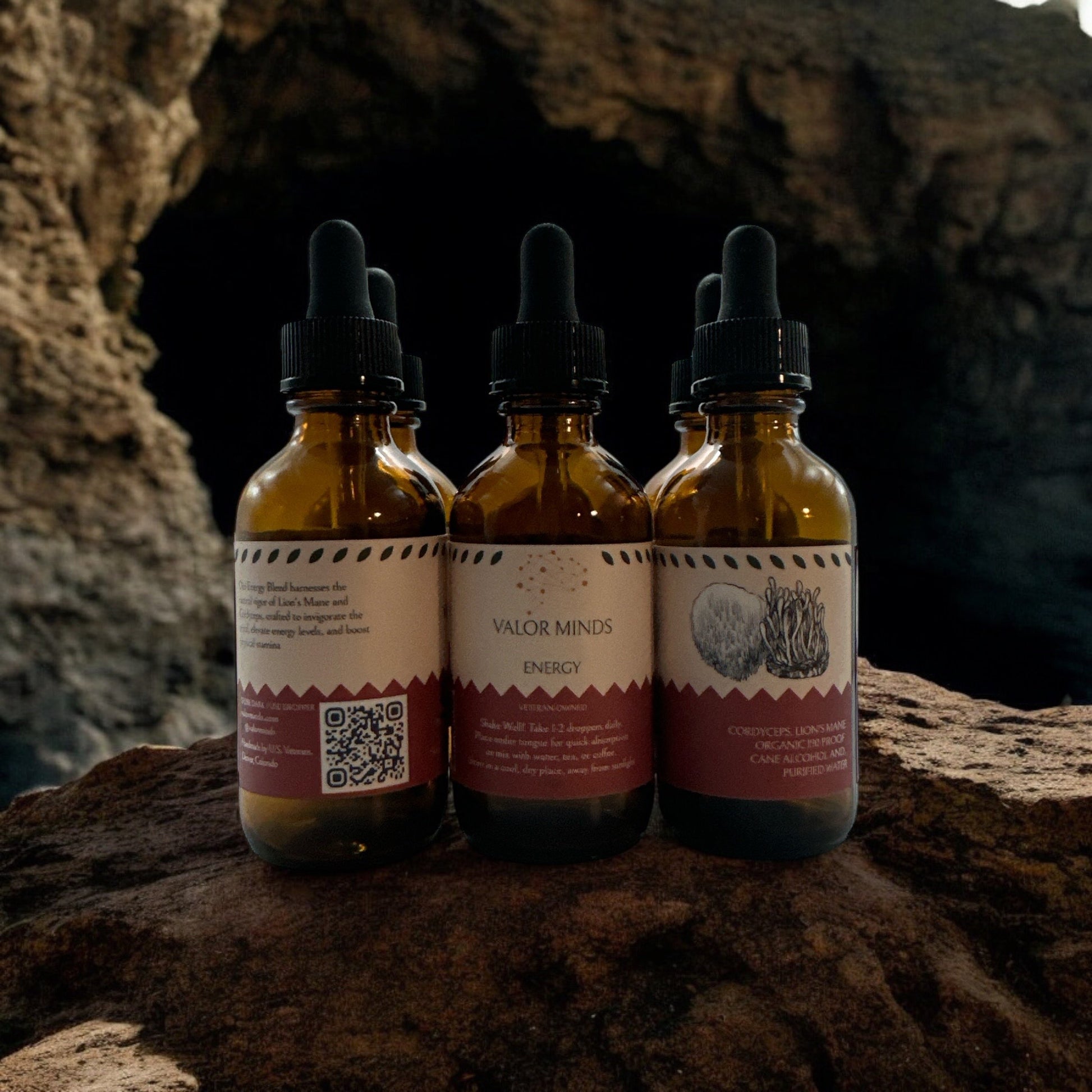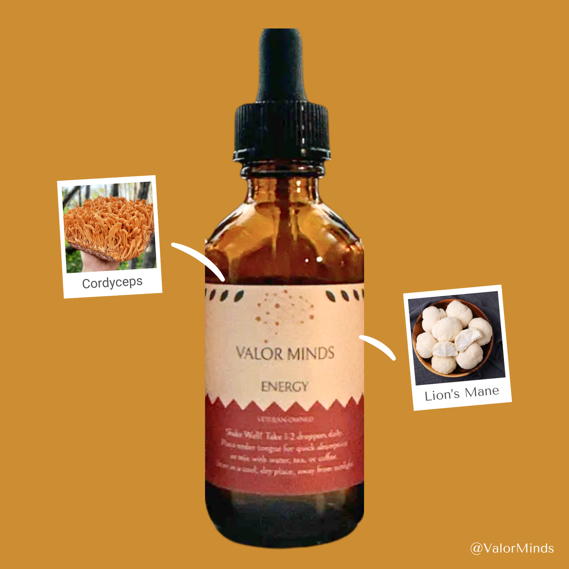 Revitalize your day with Energy, a potent blend of Cordyceps and Lion's Mane mushrooms designed to fuel your body and sharpen your mind. Cordyceps is known for boosting stamina and endurance, while Lion's Mane enhances cognitive function and mental clarity. Together, they provide a natural, balanced energy lift without the jitters or crashes of traditional stimulants. Elevate your energy levels, enhance focus, and power through your day with the natural vitality of Valor Minds.